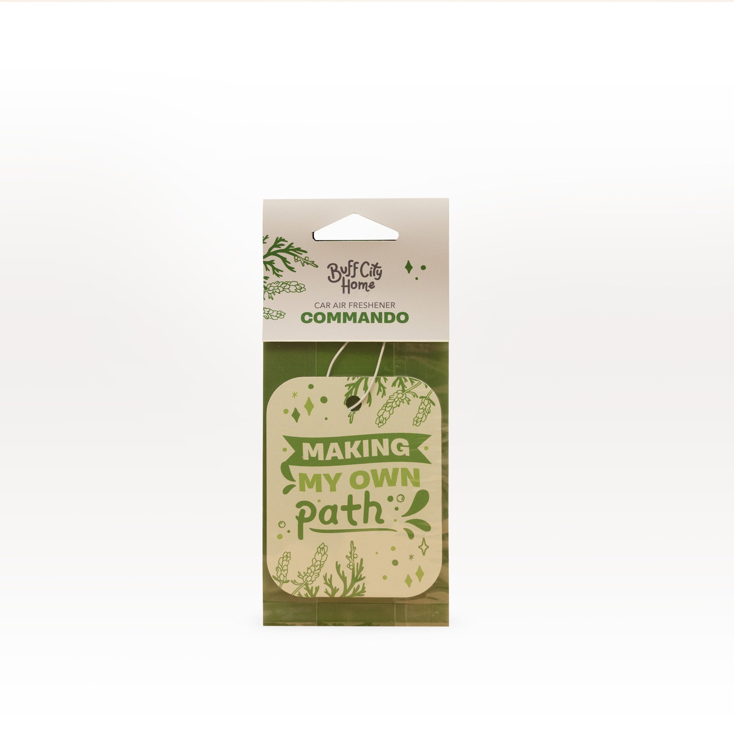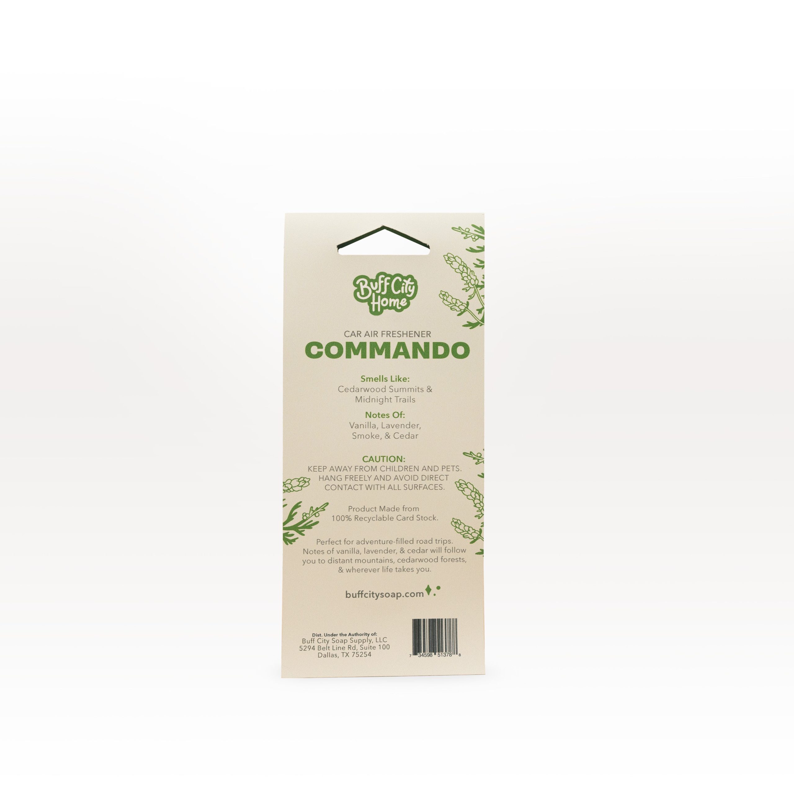 Commando?Car Air Freshener Perfect for adventure-filled road trips. Notes of vanilla. lavender. & cedar will follow you to distant mountains. cedarwood forests. & wherever life takes you.