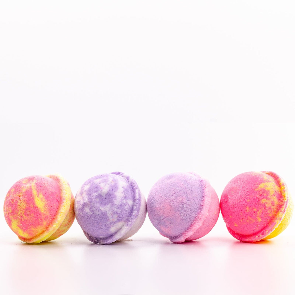 Mini Bath Bomb Set The Mini Bath Bomb Set is great for kids or grown-ups ready to let their inner child go wild! To give you four uniquely fun bath time experiences, we’ve included Mini Bath Bombs in all of our whimsical Kids Line scents: Unicorn, Mermaid, Sour Candies, and Fruity Loopy. Our Bath Bombs are plant based and handmade in store daily with paraben and phthalate free fragrances plus a blend of olive oil, cocoa, and shea butters to leave your skin feeling soft and luxurious.