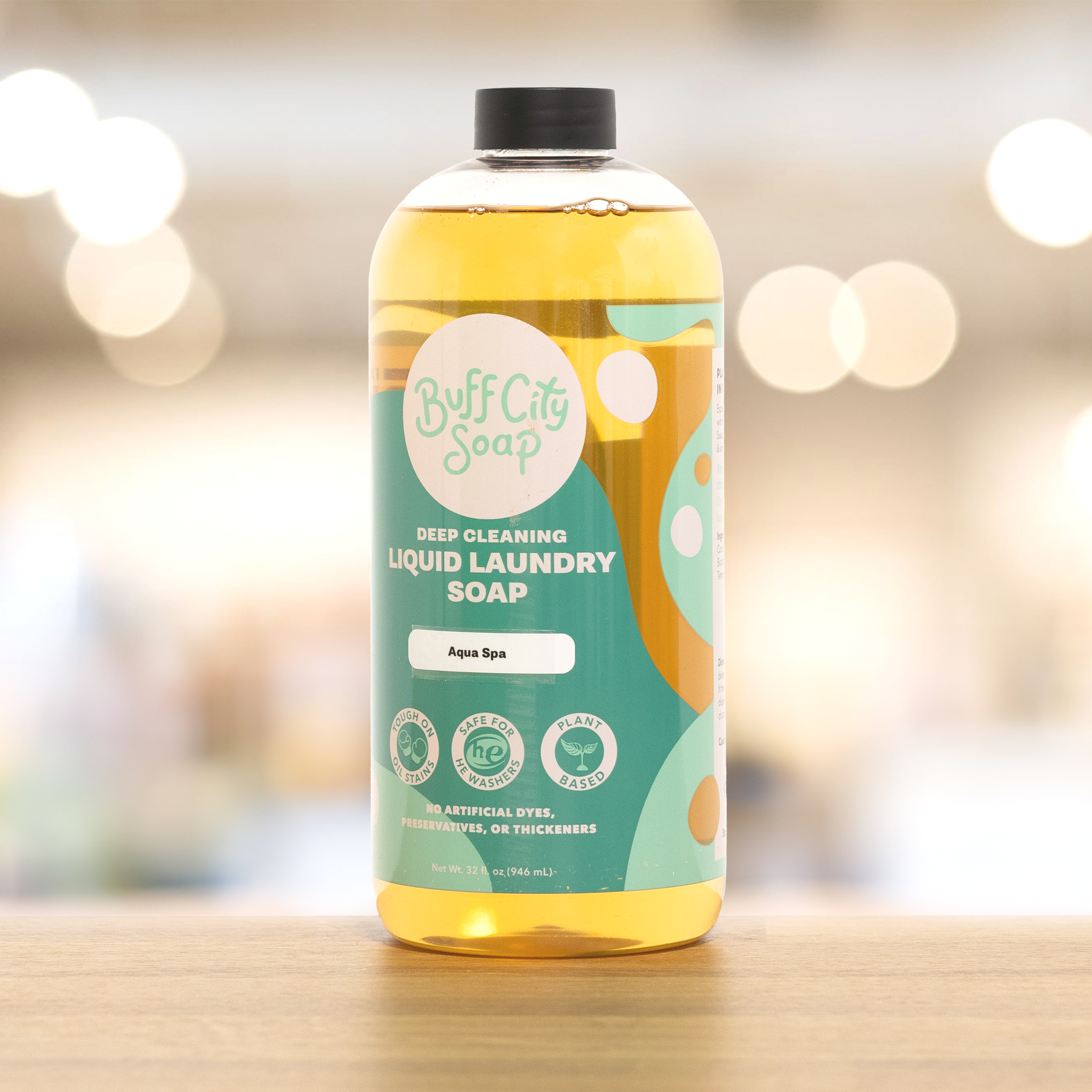 Aqua Spa?Liquid Laundry Soap ?Expertly formulated to penetrate stains and lift dirt within minutes. our Deep Cleaning Liquid Laundry Soap leaves behind a clean that you can see. feel. & smell for days.?