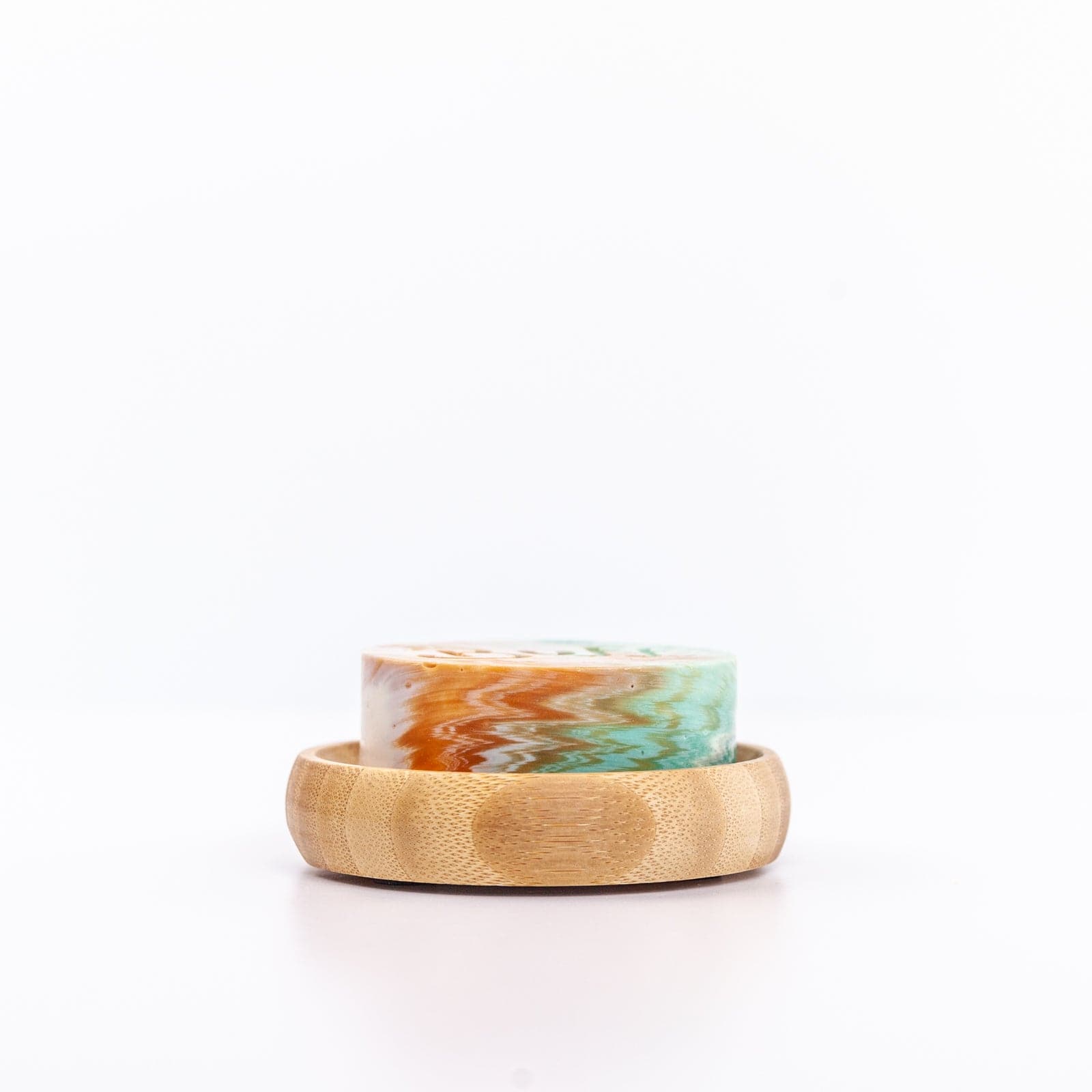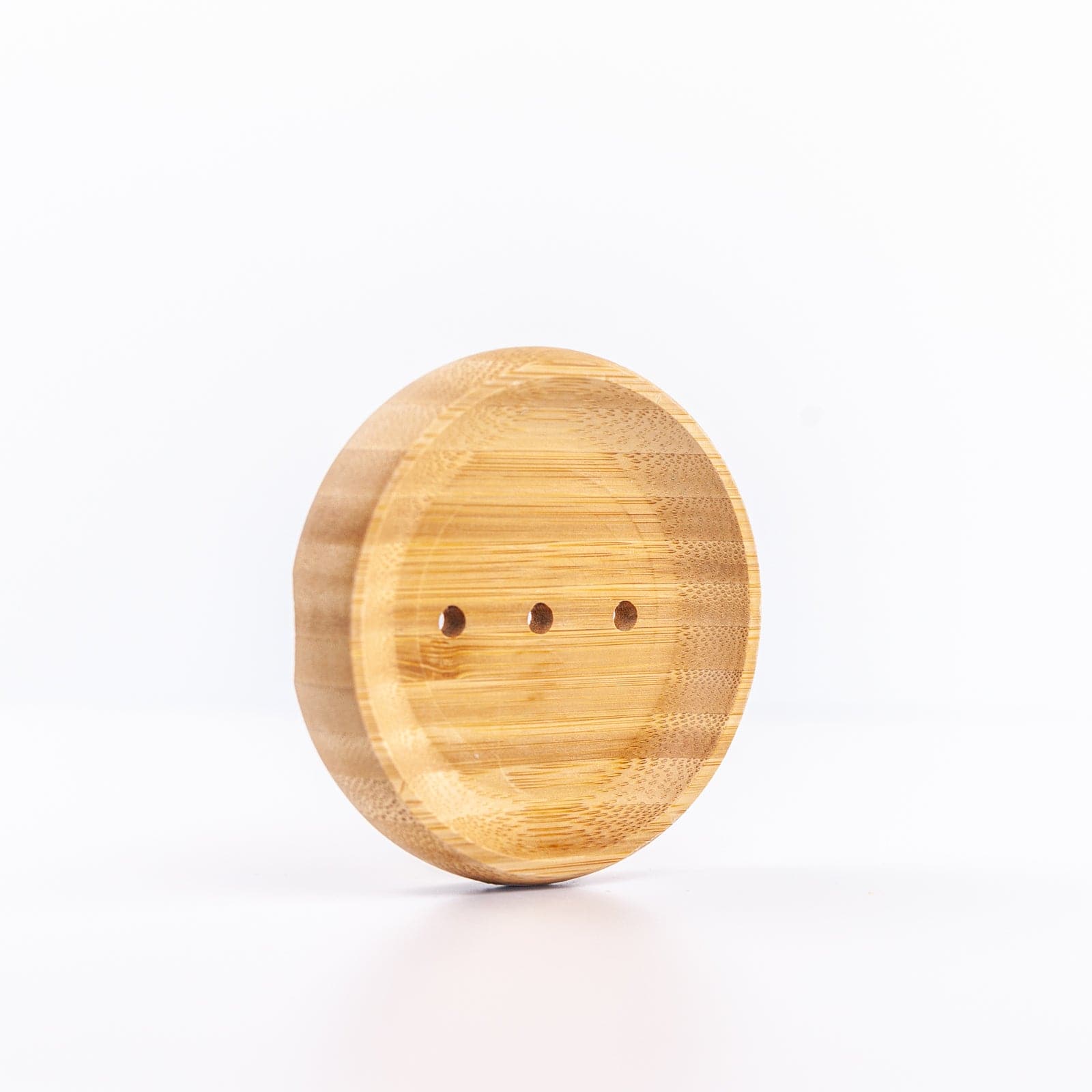 Round Wooden Soap Dish Perfect for our circular Shave and Facial Soaps. the Round Wooden Soap Dish adds a stylish natural element to your bathroom. The three small holes in the middle allow water to drain away. helping the soap stay dry between uses.