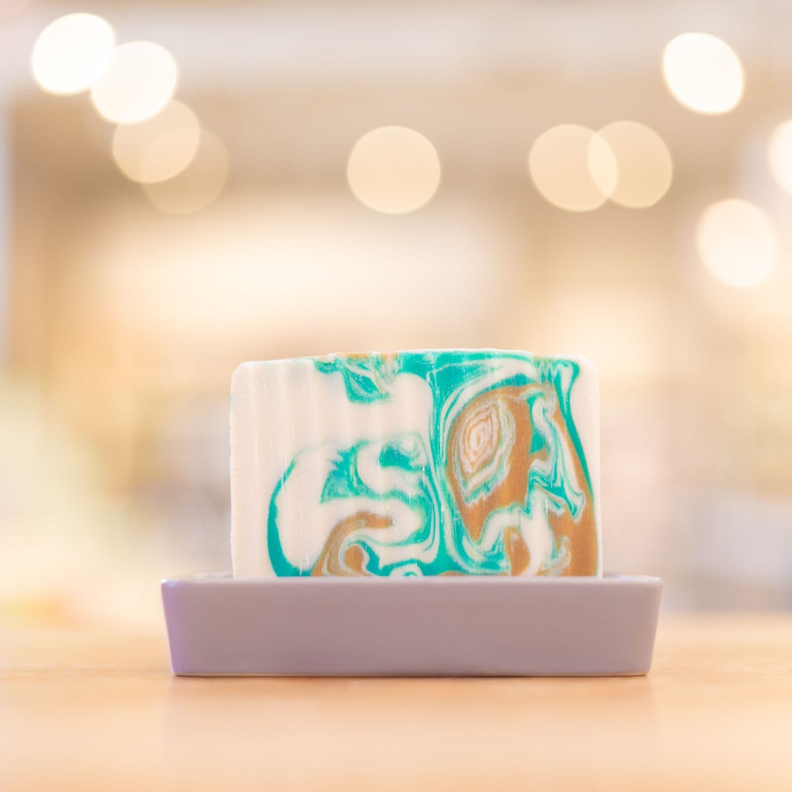 Grey Porcelain and Bamboo?Soap Dish Our Porcelain + Bamboo Soap Dish is available in a neutral grey color to stylishly keep your Soap Bar dry between uses! Spaces between the wooden slats help dry your soap while the porcelain tray keeps water from spreading across your counter and tub.